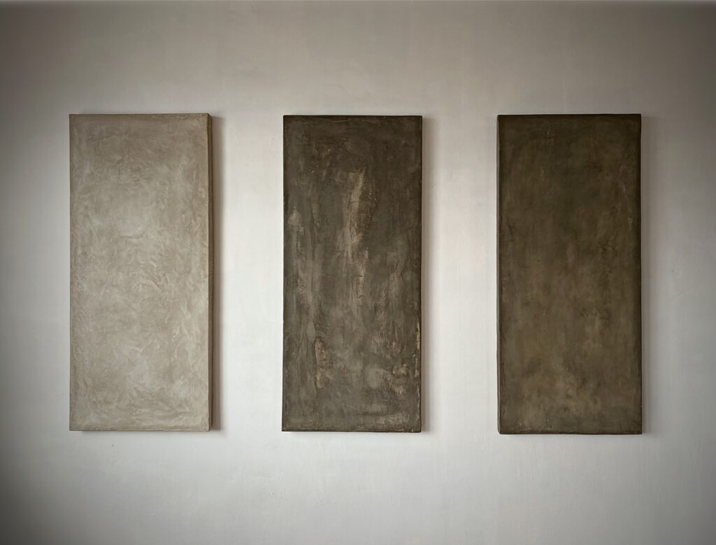 インテリアに、モールテックスを使用したアートパネルを施工しました。茶色とグレー系の落ち着いた色合いが、空間に深みとモダンな雰囲気をもたらします。